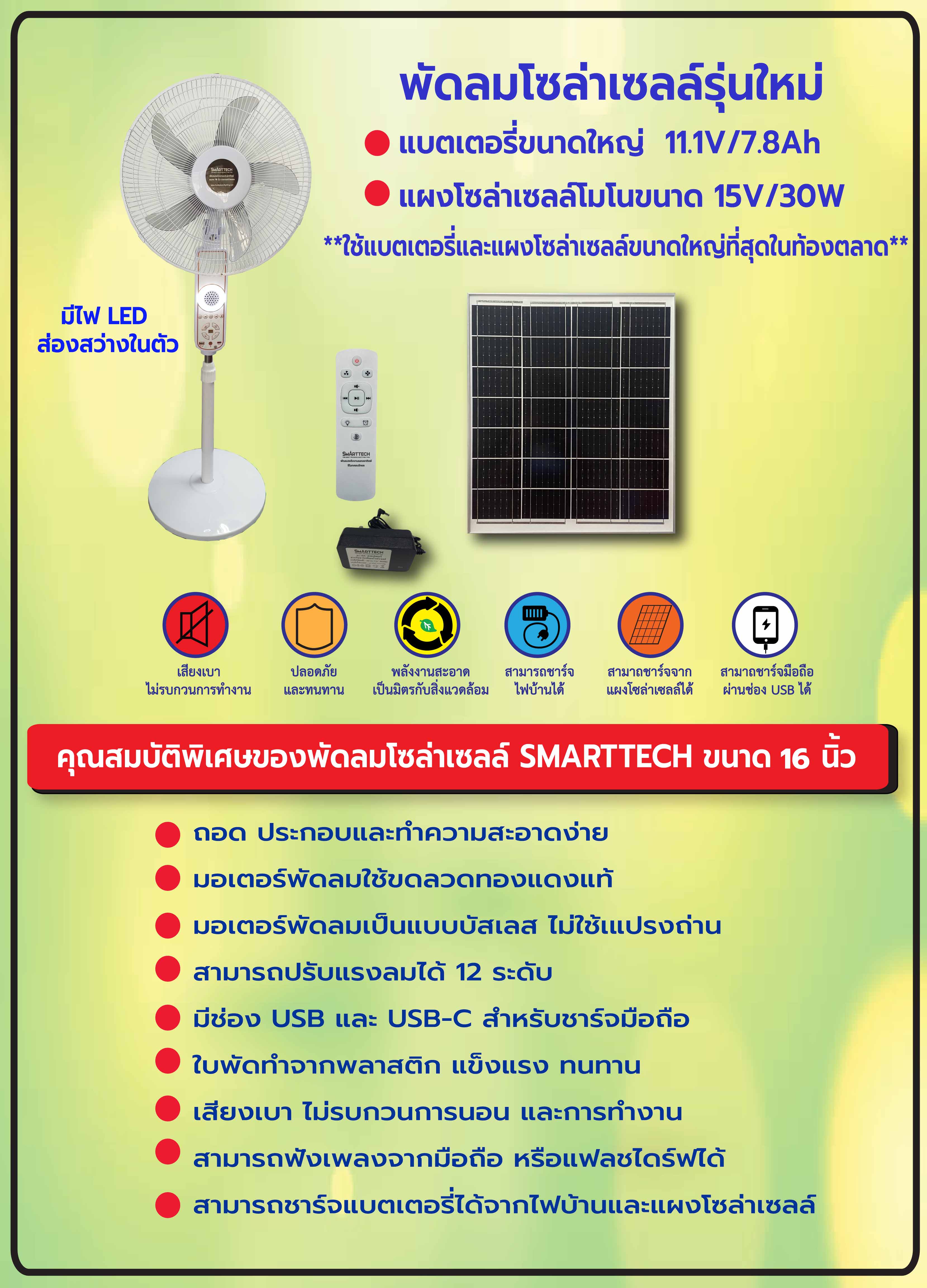 พัดลมพลังงานแสงอาทิตย์ ขนาด 16 นิ้ว รุ่นใหม่